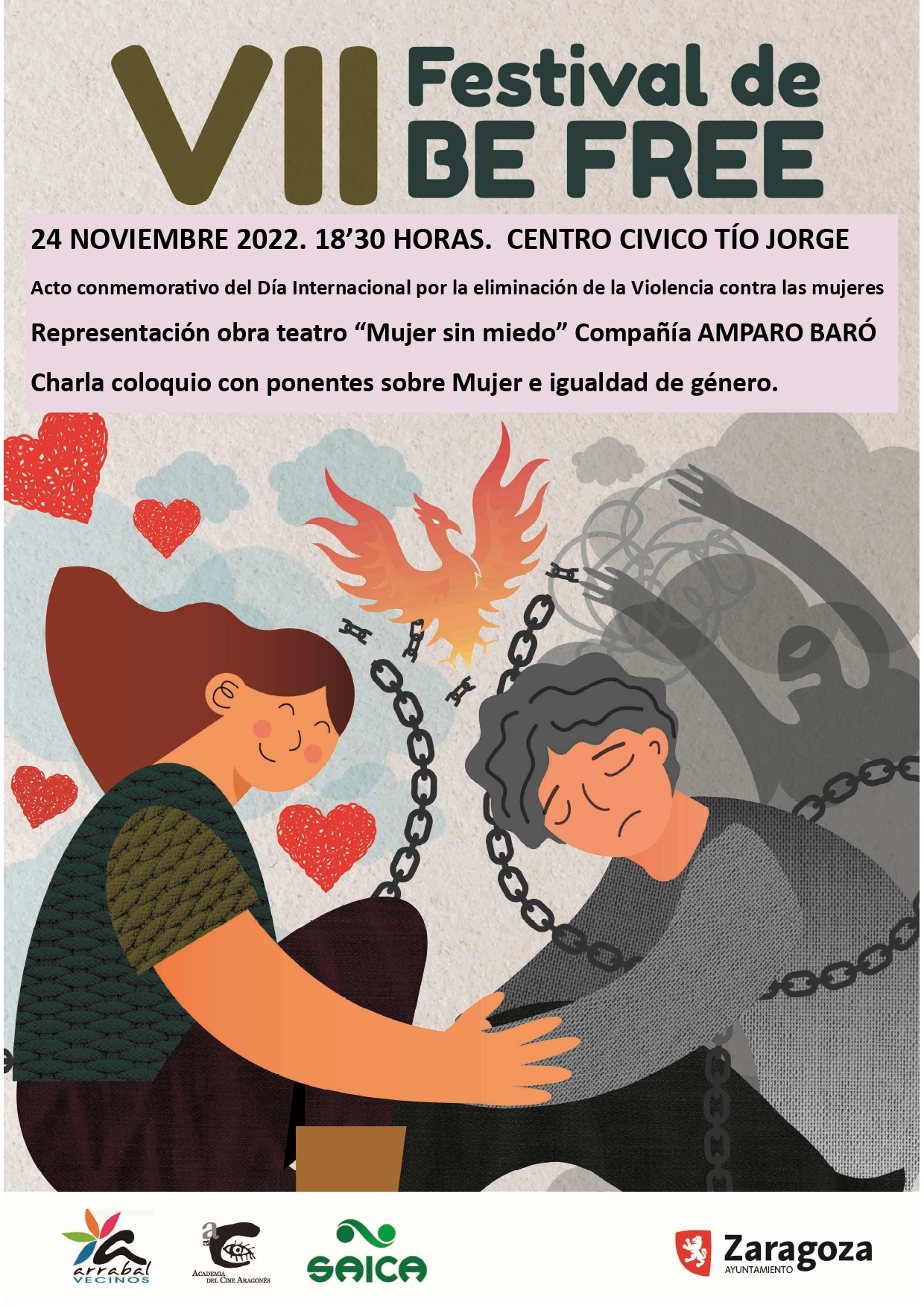 Con motivo del 25-N, Día internacional por la eliminación de la violencia contra las mujeres, el Centro Cívico Tío Jorge acogerá mañana, jueves 24 de noviembre a las 18:30h, la representación de la obra de teatro «Mujer sin miedo» de la compañía Amparo Baró.