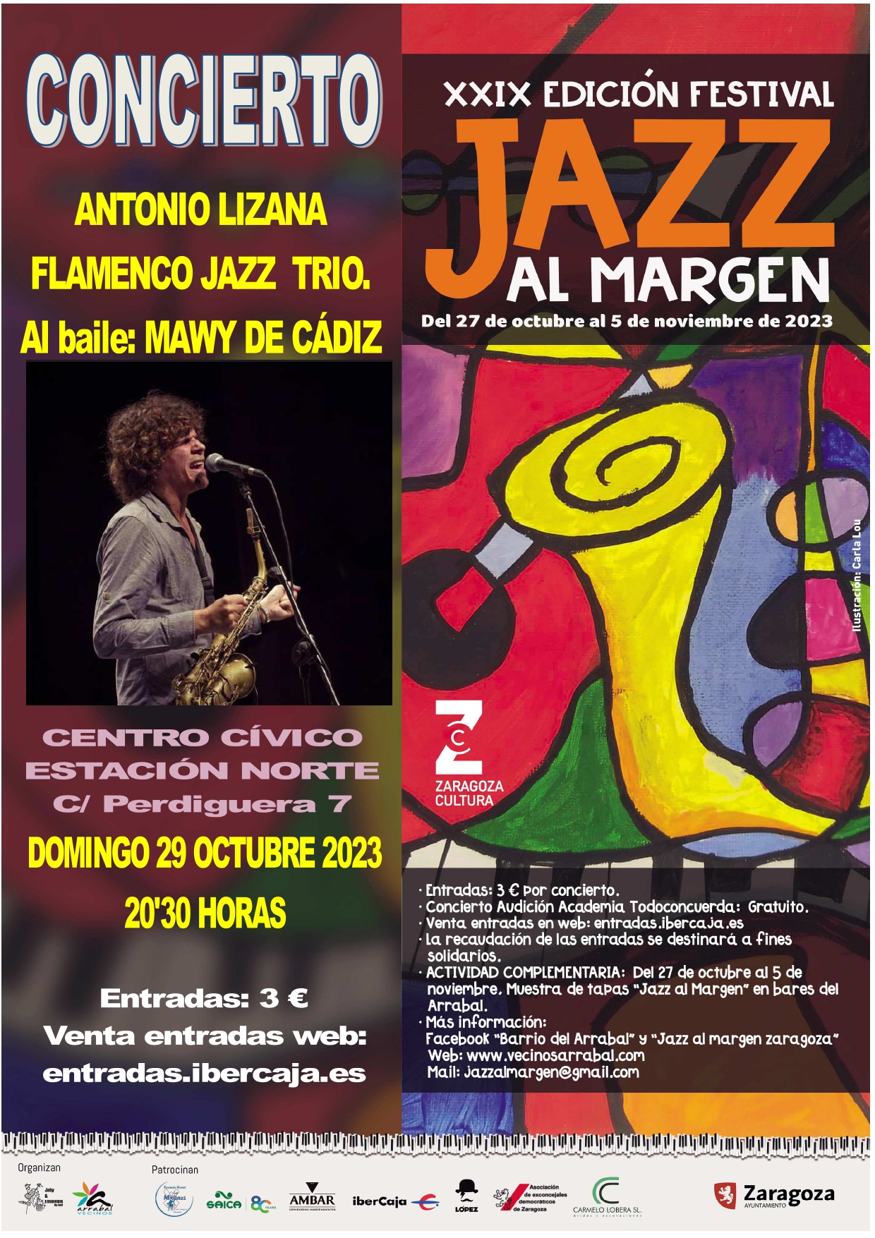 Las grandes autoridades del jazz y del flamenco de nuestro país reconocen en Lizana, saxofonista, cantaor y creador de canciones, a uno de los artistas más genuinos y con mayor proyección de la escena actual. El artista de San Fernando consigue un maridaje homogéneo y orgánico entre el flamenco, el jazz y las músicas del mundo, donde las etiquetas empiezan a carecer de sentido, dando paso a una realidad sonora propia. Antonio Lizana expone en este concierto el viaje de sus tres discos (“De viento”, “Quimeras del Mar” y “Oriente”). La influencia de Nueva York en su música se refleja en un directo muy fresco y con mucho sentimiento.