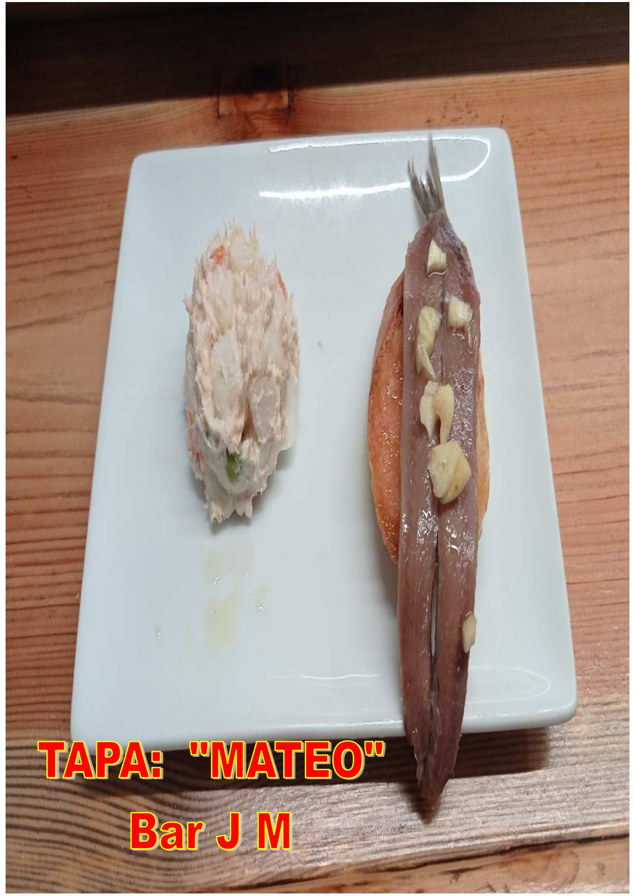- BAR JM. TAPA «Mateo». Anchoa salmuera al ajo con ensaladilla rusa. C/ Sobrarbe 47