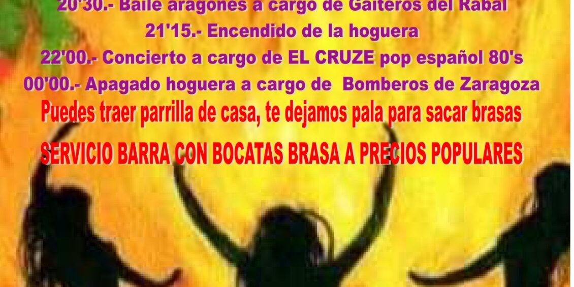 - 20:30h: Baile aragonés a cargo de Gaiteros del Rabal