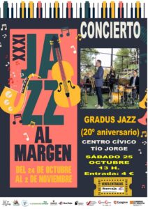 Este sábado 25 de octubre te proponemos desde la Asociación una intensa jornada de música dentro del Festival «Jazz al Margen», con dos conciertos por la mañana y otros dos conciertos por la tarde.
