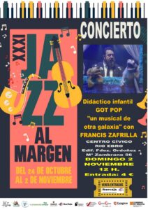 Por la mañana, el CC Río Ebro (Edificio Fdez. Ordóñez) acoge el concierto didáctico infantil GOT POP «un musical de otra galaxia» con Francis Zafrilla, a las 12h.