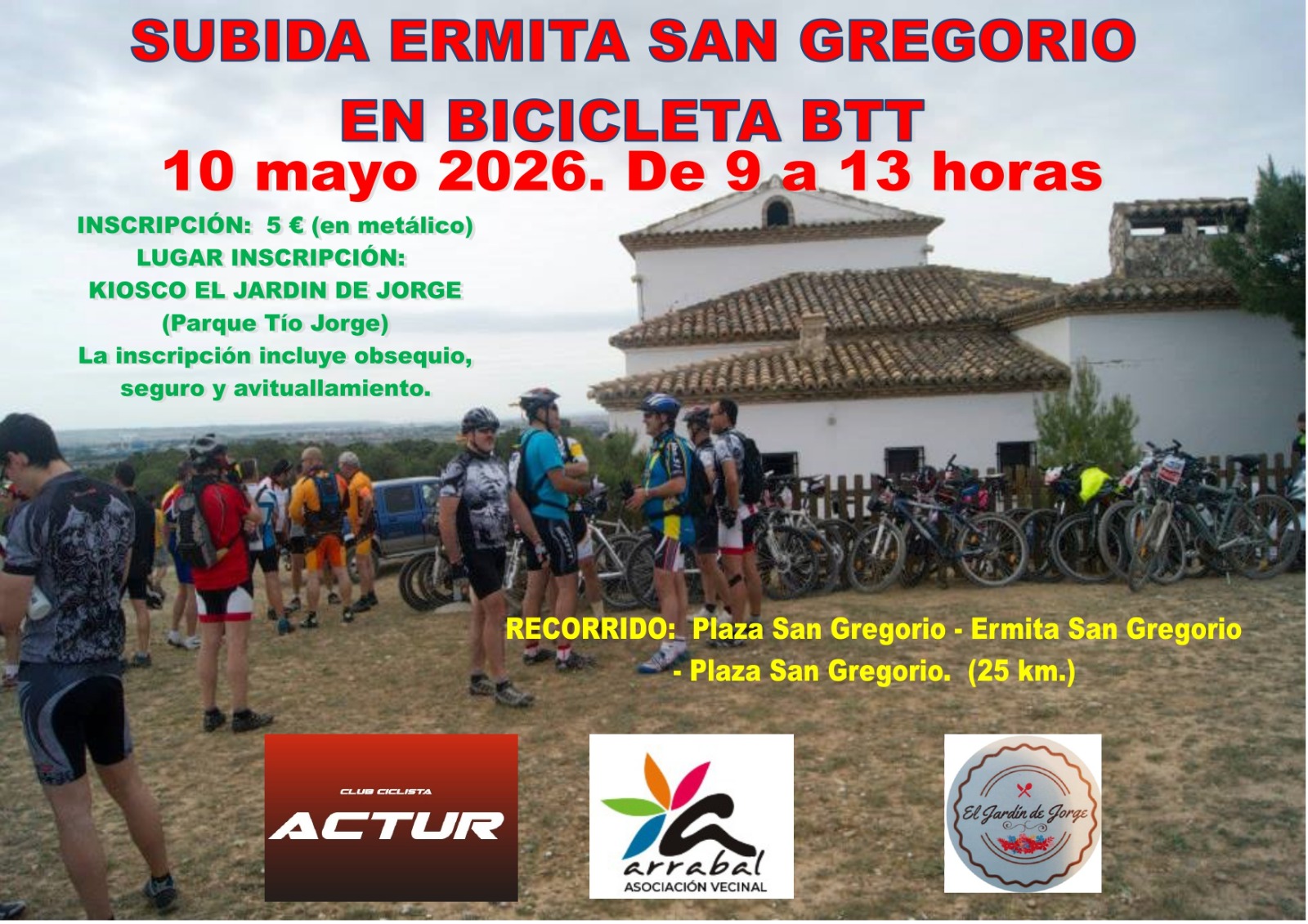 Como todos los años, este 2026 también organizamos una subida en BTT a la ermita de San Gregorio. Será el próximo 10 de mayo de 9 a 13 horas con el recorrido: Plaza San Gregorio – Ermita San Gregorio – Plaza San Gregorio (25 km en total).